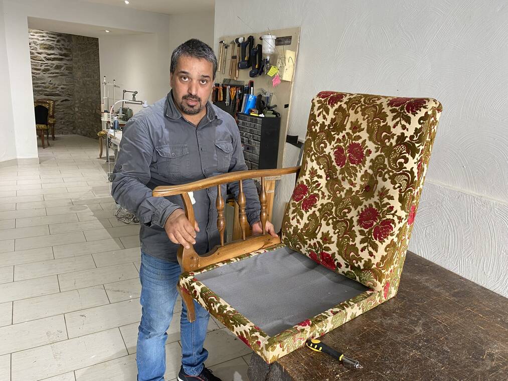 De la Syrie à Fougères, Sheiroul Omar ouvre son commerce de mobilier, il revient à ses premiers amours : la tapisserie et la réparation de mobilier...